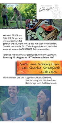 30. August - LAGERFEUER Edition - vorstellung unserer neuen Weine. Bei uns auf dem Hof